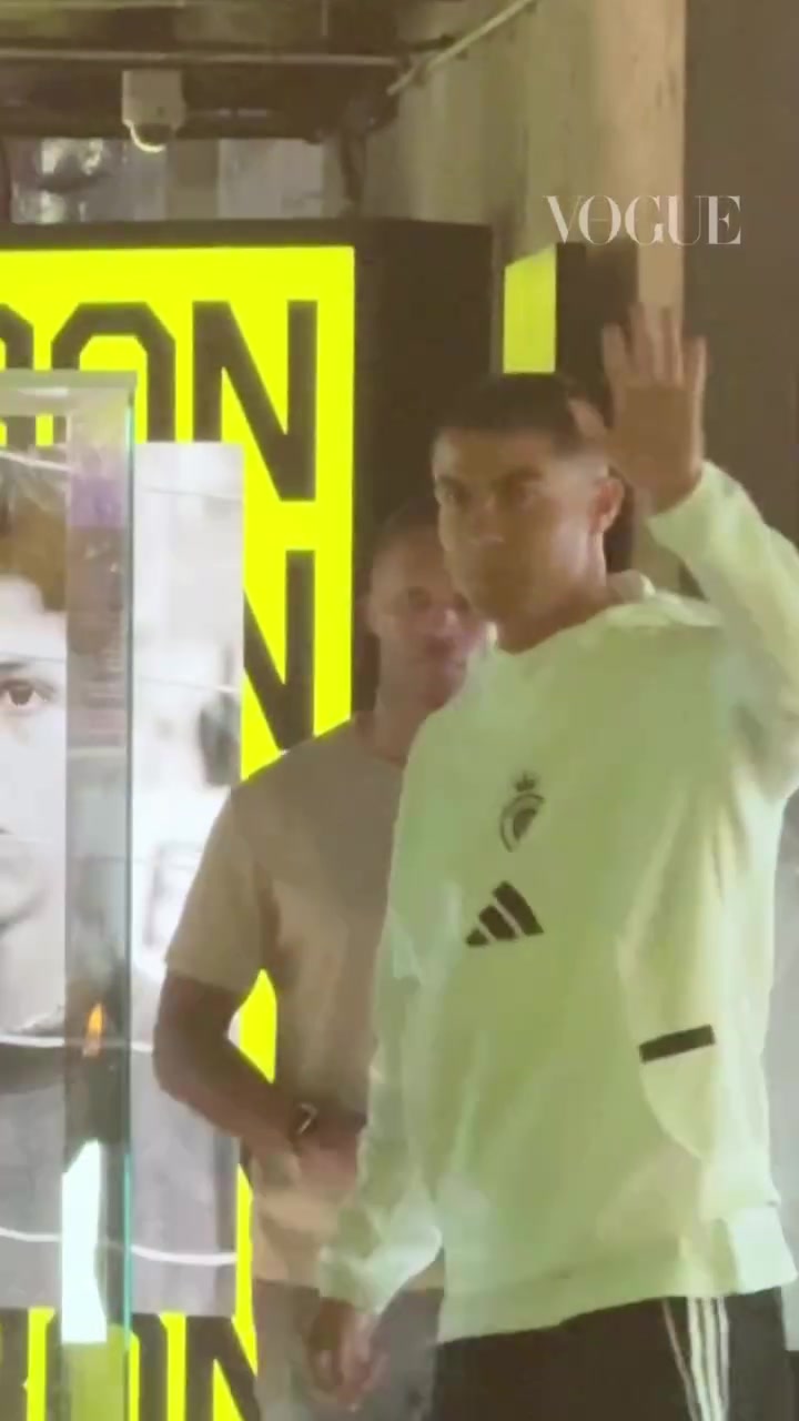 C罗昨晚现身参观CR7博物馆与球迷打招呼,现场球迷高喊C罗